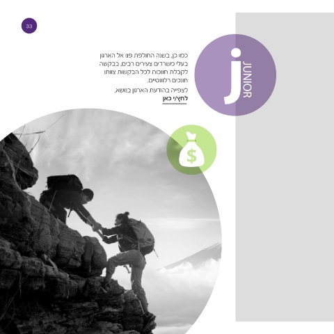 33 כמו כן ,בשנה החולפת פנו אל הארגון jJUNIOR בעלי משרדים צעירים רבים ,בבקשה לקבלת חונכות לכל הבקשות צוותו חונכים רלוונטיים. לצפייה בהודעת הארגון בנושא, לחץ/י כאן $