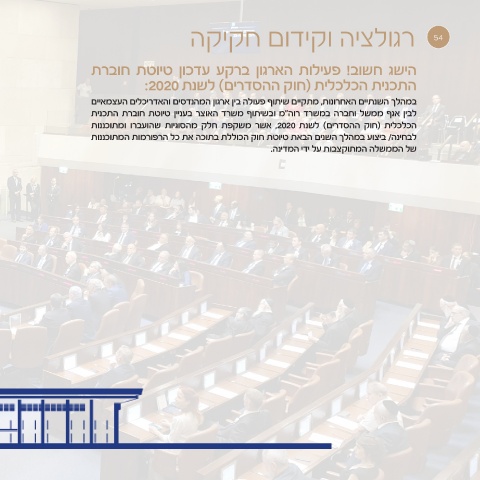 הכלכלית (חוק ההסדרים) לשנת ,2020אשר משקפת חלק מהסוגיות שהועברו ומתוכננות