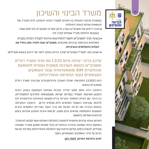 במסגרת שיתוף הפעולה בין הארגון למשרד הבינוי והשיכון ,להלן סקירה של