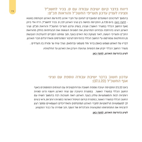 73 דיווח בדבר קיום ישיבת עבודה עם ס .בכיר לחשכ"ל