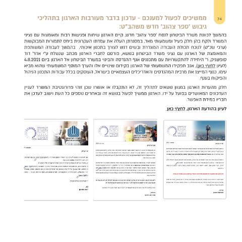 74ממשיכים לפעול למענכם -עדכון בדבר מעורבות הארגון בתהליכי