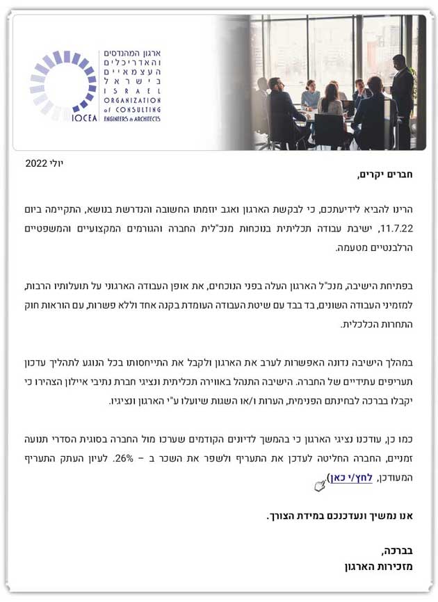 עדכון בדבר פגישה עבודה עם מנכ"לית נתיבי איילון וצוותה מיום 11.7.22