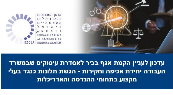 עדכון לעניין הקמת אגף בכיר לאסדרת עיסוקים שבמשרד העבודה יחידת אכיפה וחקירות - הגשת תלונות כנגד בעלי מקצוע בתחומי ההנדסה והאדריכלות