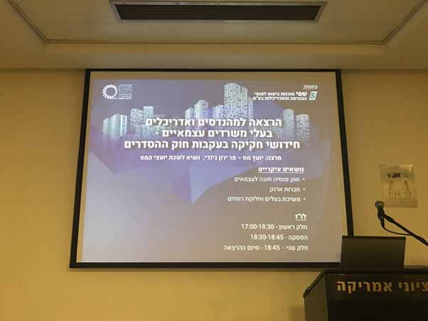 הרצאה חשובה בנושא חידושי חקיקה בעקבות חוק ההסדרים - 17.5.17