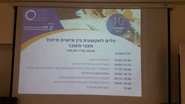 הרצאה בנושא כלים לתקשורת בין אישית וניהול מצבי משבר בשלוחת פעילות הארגון בחיפה - 10.9.17