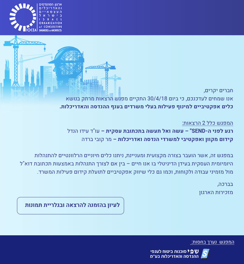 הארגון ממשיך לפעול למענכם - סיכום מפגש הרצאות כלים אפקטיביים למינוף פעילות בעלי משרדים בענף ההנדסה והאדריכלות