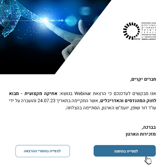 סיכום הרצאת Webinar בנושא: אתיקה מקצועית - מבוא לחוק המהנדסים והאדריכלים (24.7.2023)