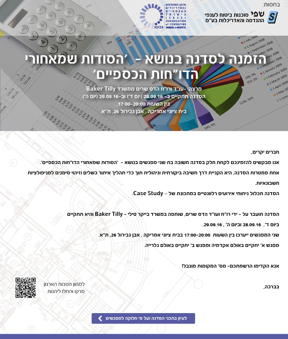הזמנה לסדנה בנושא - ' הסודות שמאחורי הדו"חות הכספיים' - מרצה עו"ד ורו"ח הדס שרים ממשרד Baker Tilly