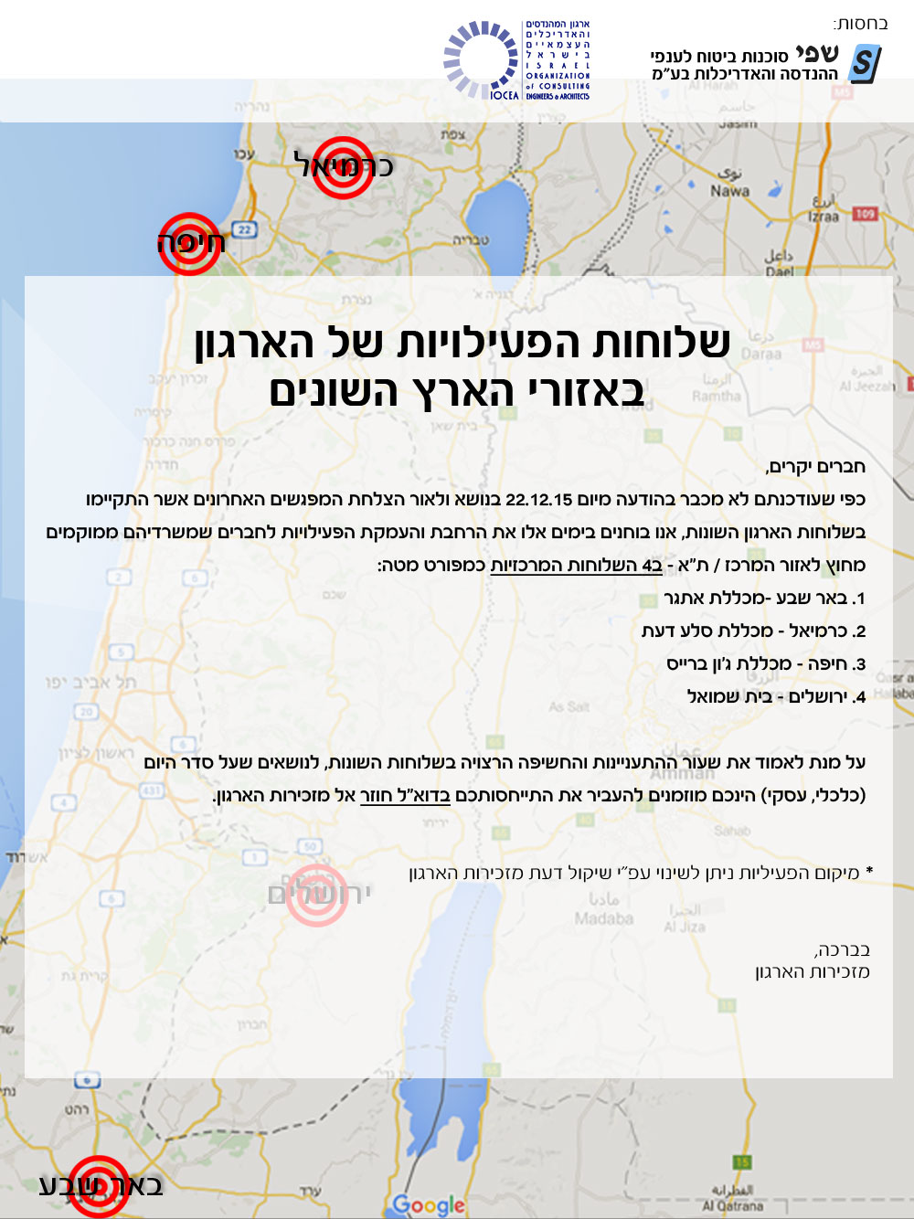 הודעה בדבר העמקת הפעילויות של שלוחות הארגון באזורי הארץ השונים