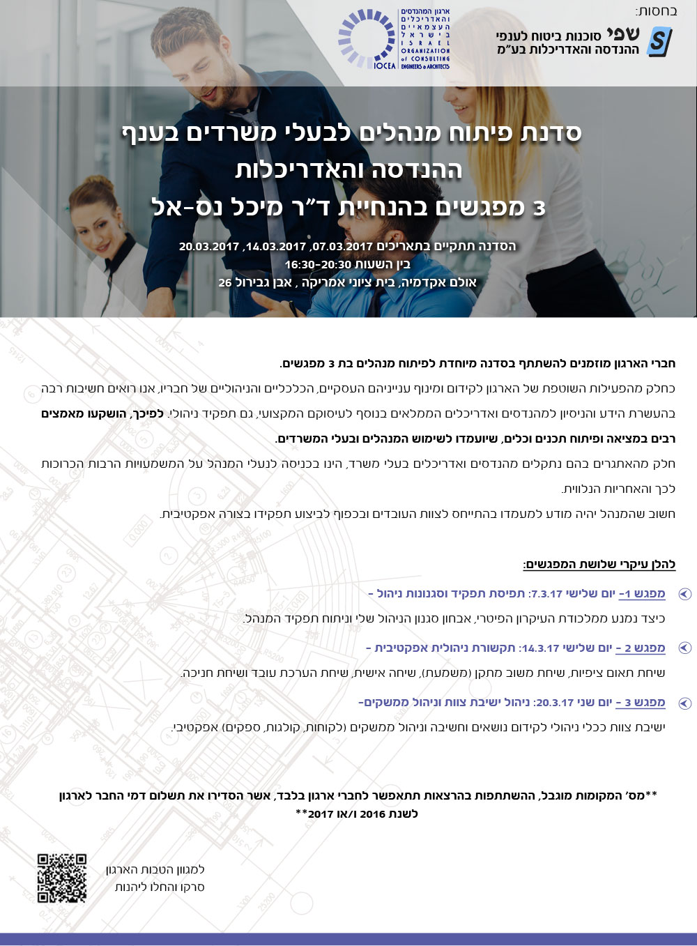 הזמנה להירשם לסדנת פיתוח מנהלים לבעלי משרדים בענף ההנדסה והאדריכלות