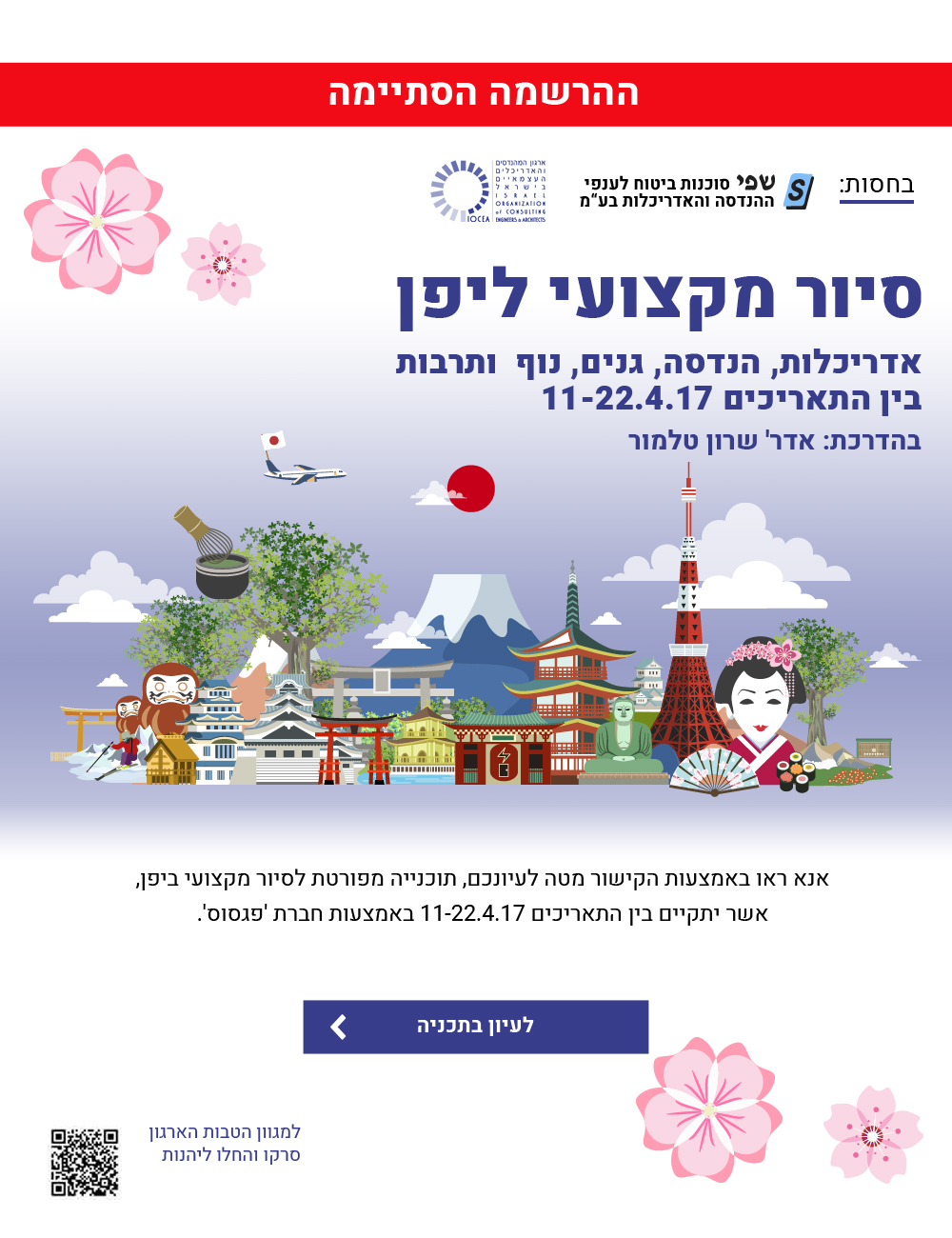 ההרשמה הסתיימה! לסיור מקצועי ליפן - אדריכלות, הנדסה, גנים, נוף ותרבות - בין התאריכים 11.4.17-22.4.17