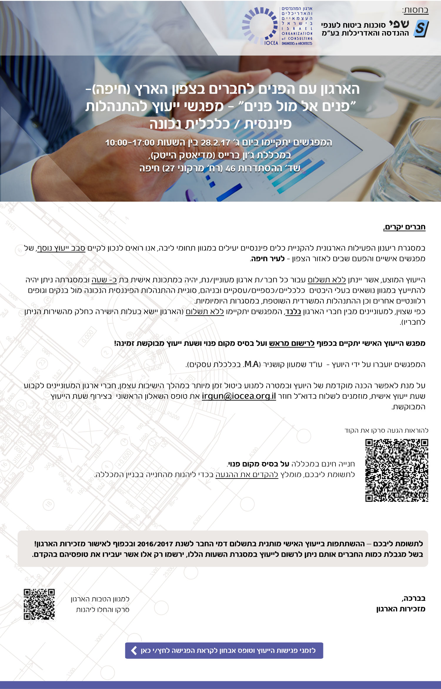 הארגון עם הפנים לצפון - סבב שני של מפגשי "פנים מול פנים" בשלוחת פעילות הארגון בחיפה 28.2.2017