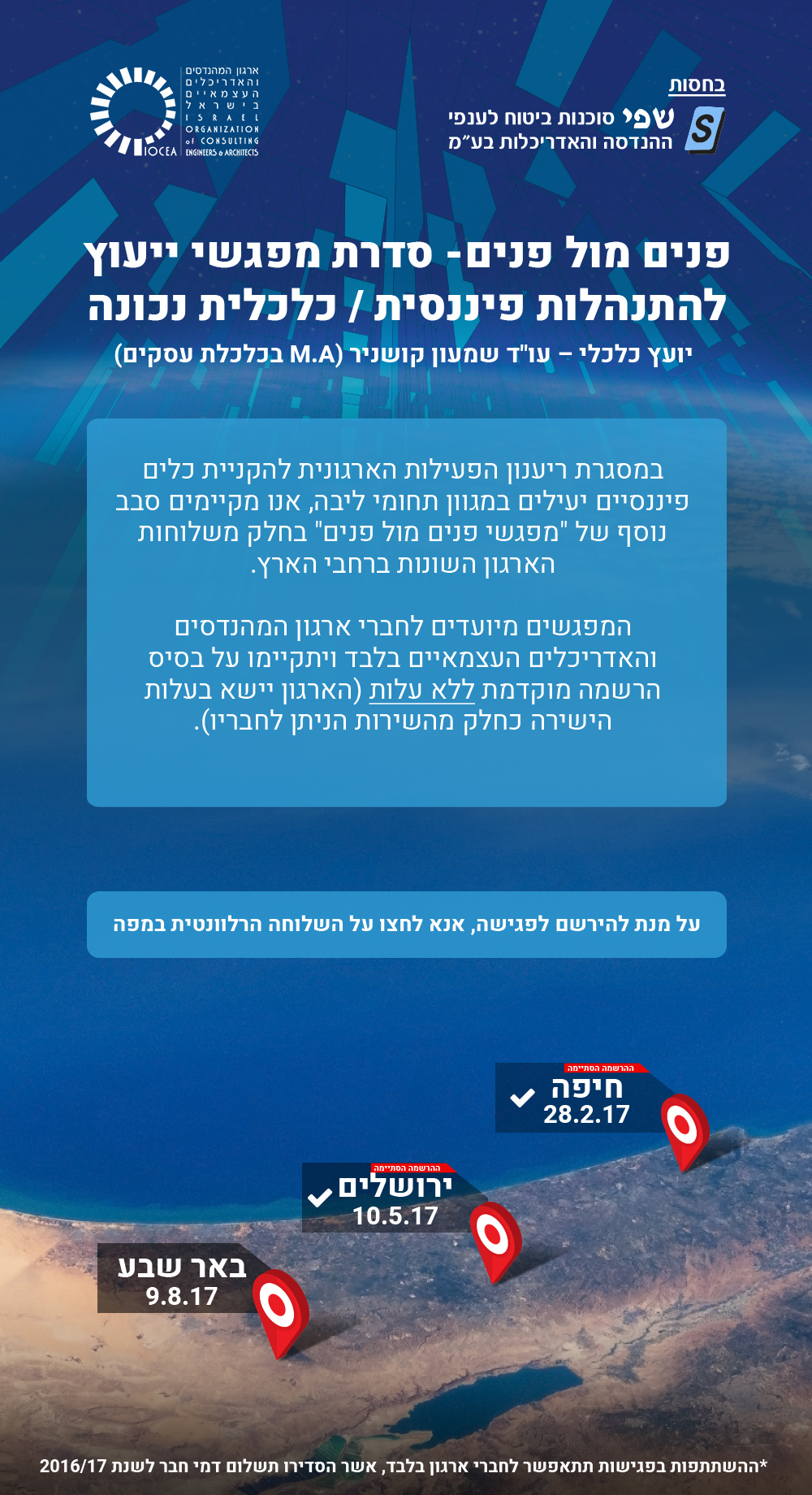 הארגון ממשיך לפעול עבורכם בשלוחותיו השונות ברחבי הארץ- סדרת מפגשי ייעוץ "פנים מול פנים"