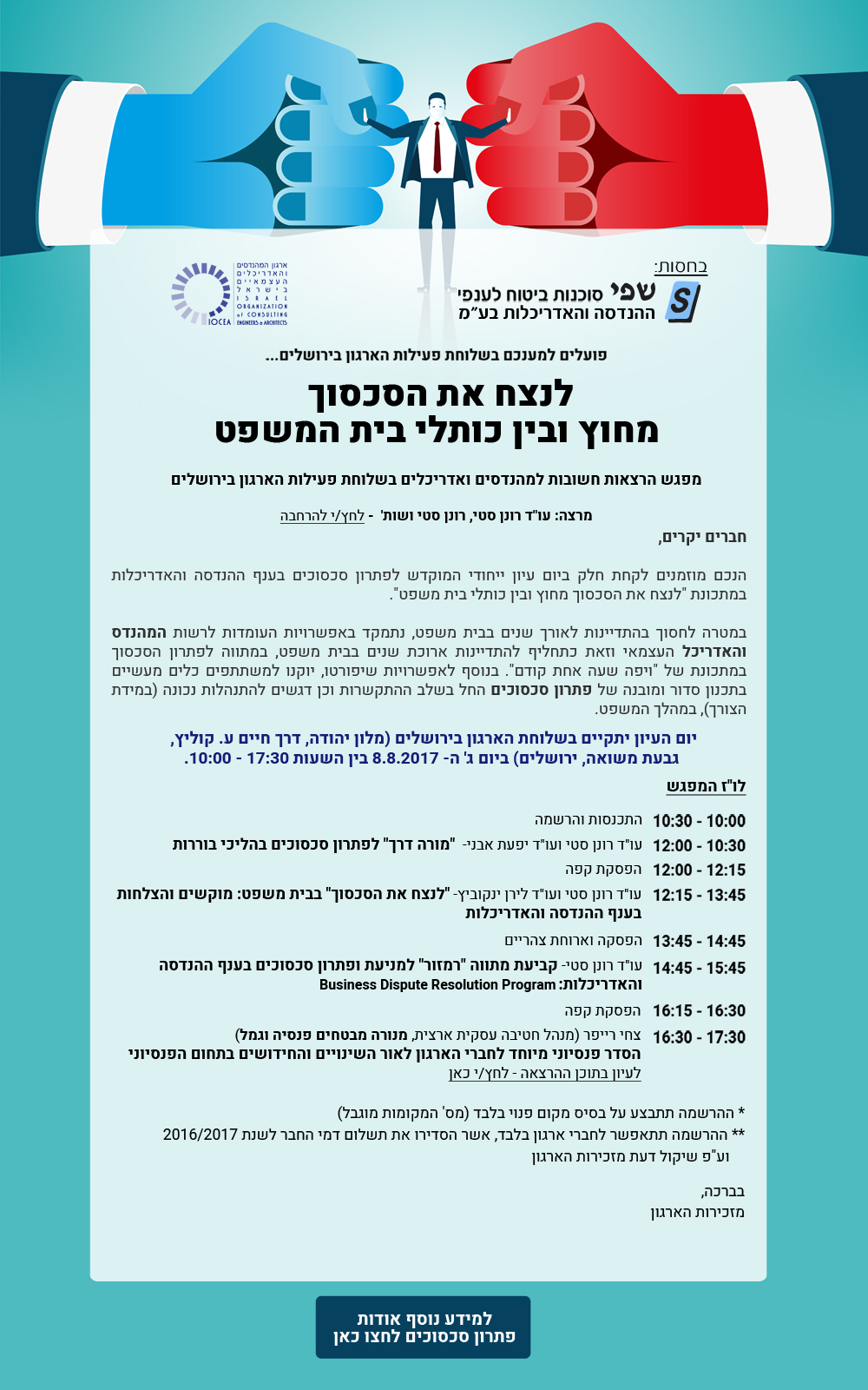 הזמנה ליום עיון בנושא - לנצח את הסכסוך מחוץ לכותלי בית המשפט (שלוחת פעילות הארגון בירושלים)