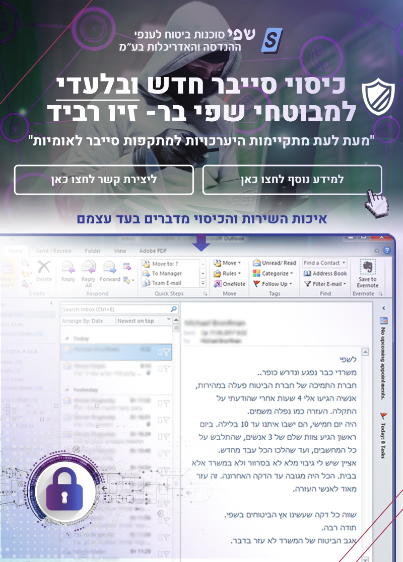 עובדות מהשטח! – כיסוי חדש ובלעדי למבוטחי שפי בר- זיו רביד בלבד- שירותי תמיכה מקצועית מהירה בעת מתקפת סייבר