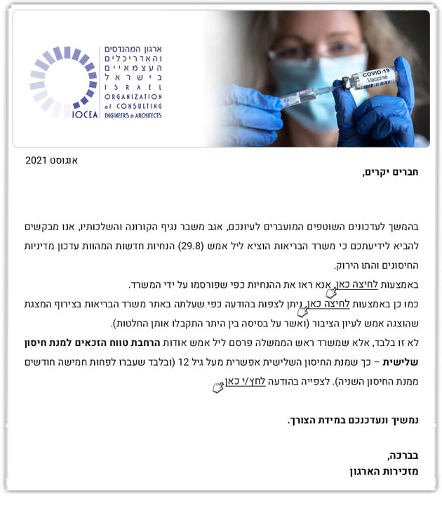 ממשיכים לפעול למענכם - עדכוני משבר נגיף קורונה (30.8.21)